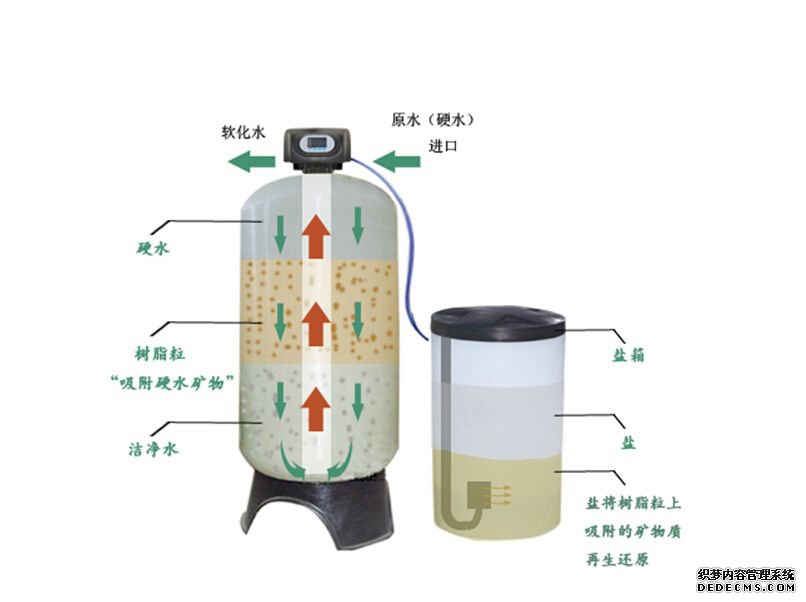 1、供水:未處理的硬水通過樹脂層,發(fā)生交換反應(yīng),產(chǎn)生軟化水。