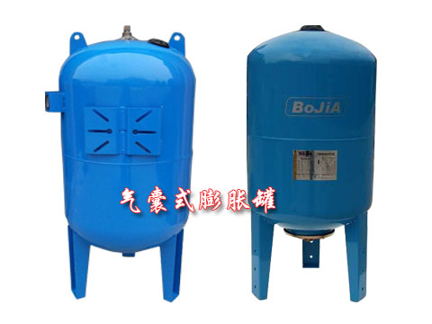 氣囊式膨脹罐,用于系統(tǒng)中起緩沖壓力波動(dòng)及部分給水的作用,在熱力系統(tǒng)中主要是用來吸收工作介質(zhì)因溫度變化增加的那部分體積;在供水系統(tǒng)中主要用來吸收系統(tǒng)因閥門、水泵等開和關(guān)所引起的水錘沖擊,以及夜間少量補(bǔ)水使供水系統(tǒng)主泵休眠從而減少用電,延長水泵使用壽命。膨脹罐—由罐體、氣囊、進(jìn)/出水口及補(bǔ)氣口四部份組成。罐體一般為碳鋼材質(zhì),外面是防銹烤漆層;氣囊為EPDM環(huán)保橡膠;氣囊與罐體之間的預(yù)充氣體出廠時(shí)已充好,無需自己加氣。